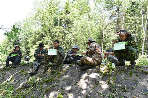 每天清晨,隊員們都會像往常一樣,早早的到達預定路段開始工作。他們不但要頂著烈日的暴曬和山雨的洗禮,還要經(jīng)受著蚊蟲的叮咬,長長的毒針刺進了隊員們的皮膚,中毒后的眼部立即腫脹成了一條細縫,叮咬過的耳部更是癢痛難止。面對這樣的艱苦條件,卻沒有一個人喊累叫苦,選擇退出。