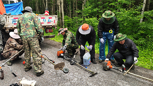 每年的6、7月份,都能在長白山的西景區(qū)和南景區(qū)看到這樣的一支隊伍。他們身穿迷彩服裝,手持割草機械,忙碌的在公路兩側(cè)和停車場清割野草,他們就是公司景區(qū)運營三部的“割草小分隊”。