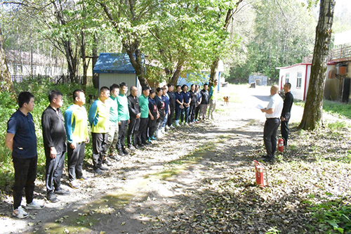 演練前,長白山池西區(qū)森林消防大隊的兩位教員以圖文并茂的方式,向大家講授了消防知識和要義,并指導大家對撲火機具進行一對一的實操。員工們珍惜機會、力學篤行,消防意識和實操能力得到進一步提升。